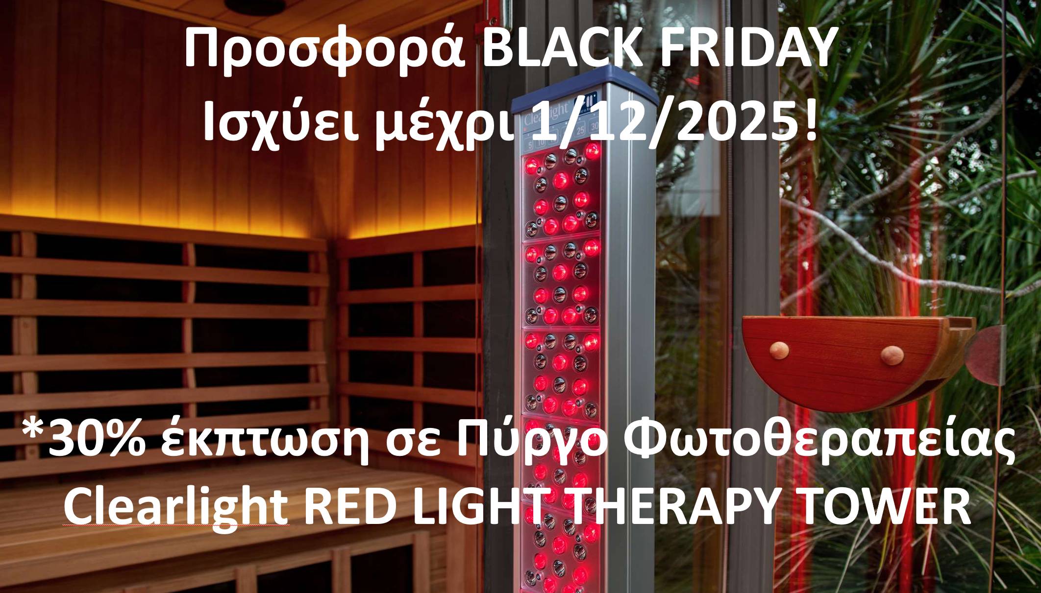 Το Red Light Therapy Tower μπορεί είτε να εγκατασταθεί απευθείας στο εσωτερικό της σάουνας Clearlight.